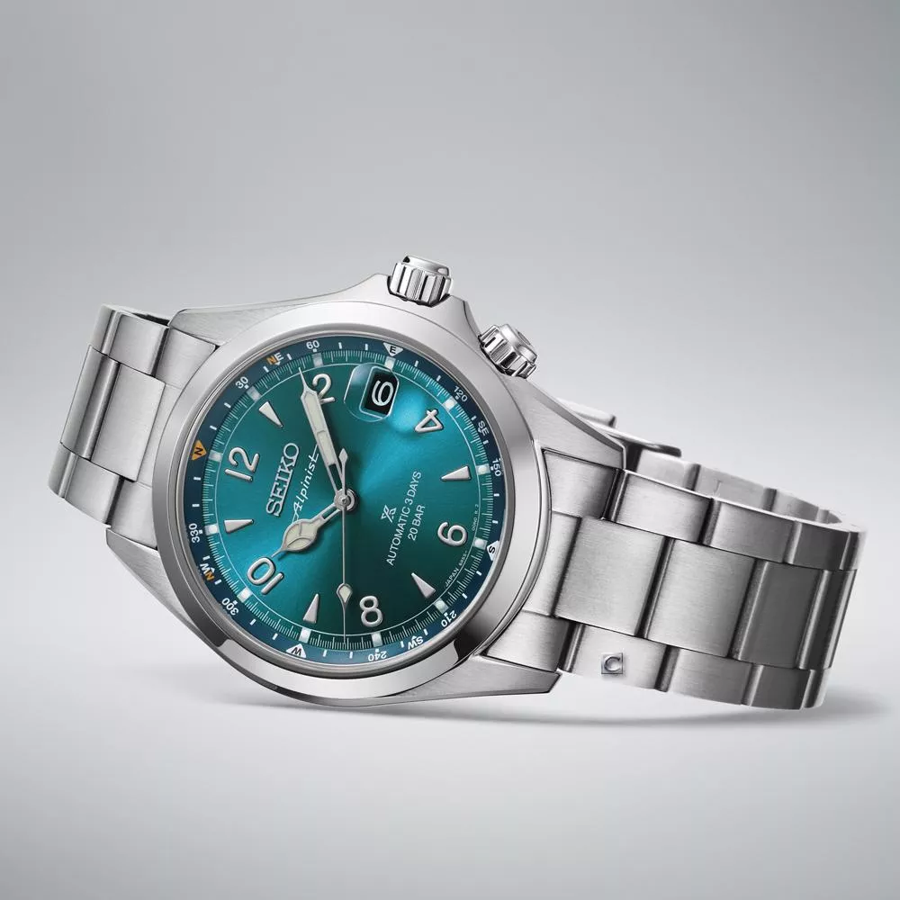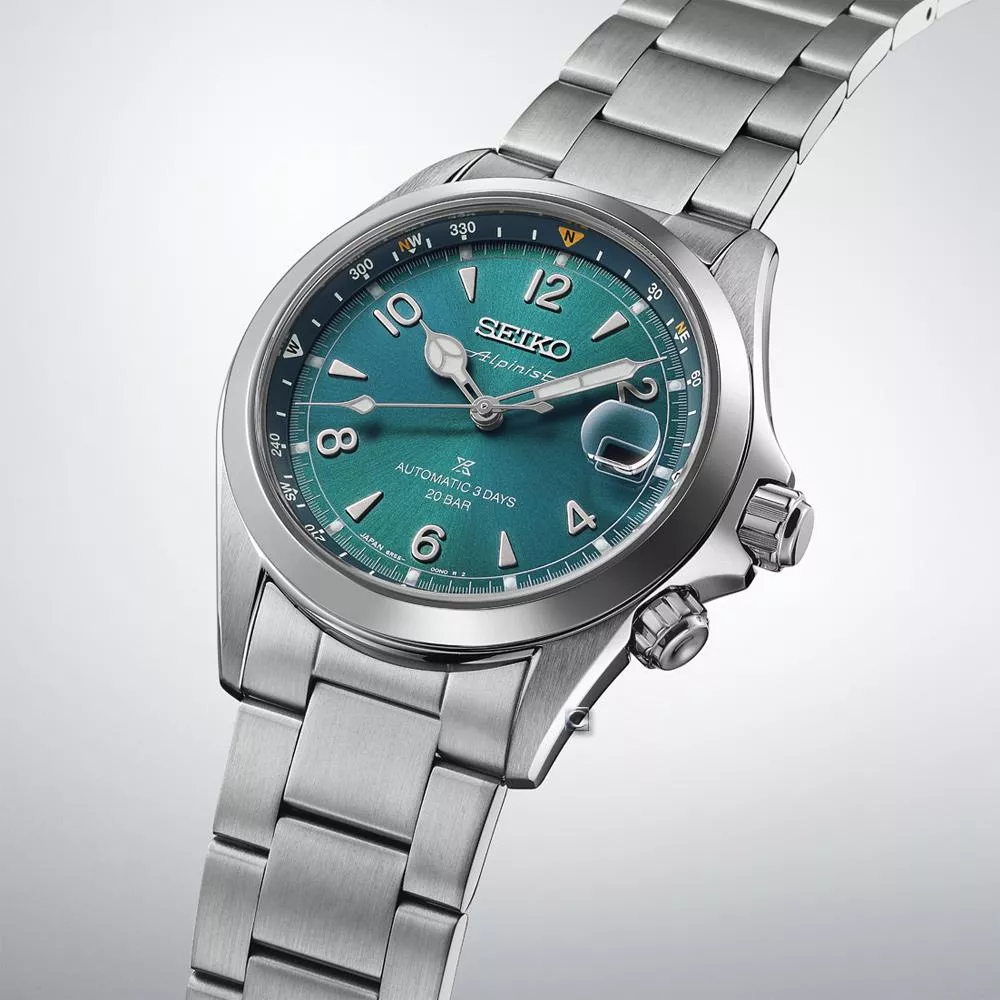 藍寶石水晶鏡面下,靈感來自經典的青藍色錶盤搭配「教堂式」時針和分針,以及經典的阿拉伯數字和楔形時標。錶盤上印有傳統的Alpinist標誌,位於Seiko標誌下方,此設計也出現在20世紀50年代的首款Laurel Alpinist腕錶上。錶背錮刻有「山地裝置」(Mountain Device)標誌,這款復古設計彰顯了腕錶的野外性能。錶殼表面覆有超硬塗層,增強了耐刮擦性和光澤度。