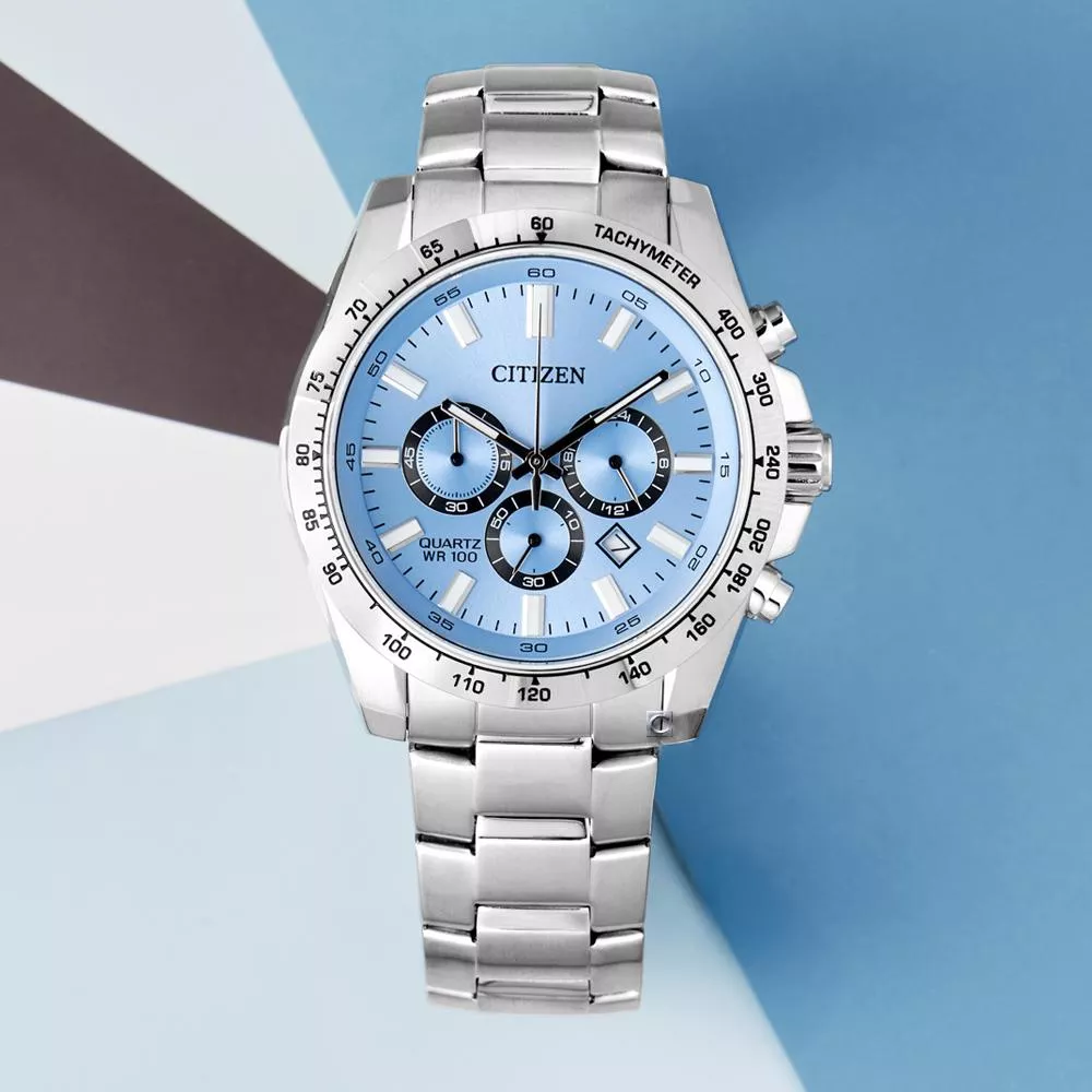 這款腕錶專為現代男士設計,採用清爽的冰藍色錶盤,搭配對比鮮明的銀色指針和時標,確保清晰易讀。耐用的不鏽鋼錶殼和錶鍊,外觀拋光精緻,適合正式和休閒場合。這款腕錶搭載可靠的石英計時機芯,具備秒錶功能,非常適合積極的生活方式和日常計時需求。腕錶還在 4 點鐘位置設有便捷的日期顯示,並配有夜光指針,提升弱光環境下的可讀性。兼具時尚感與實用性能。無論您是前往辦公室還是週末探險,這款腕錶都是您準時且時尚的百搭伴侶。