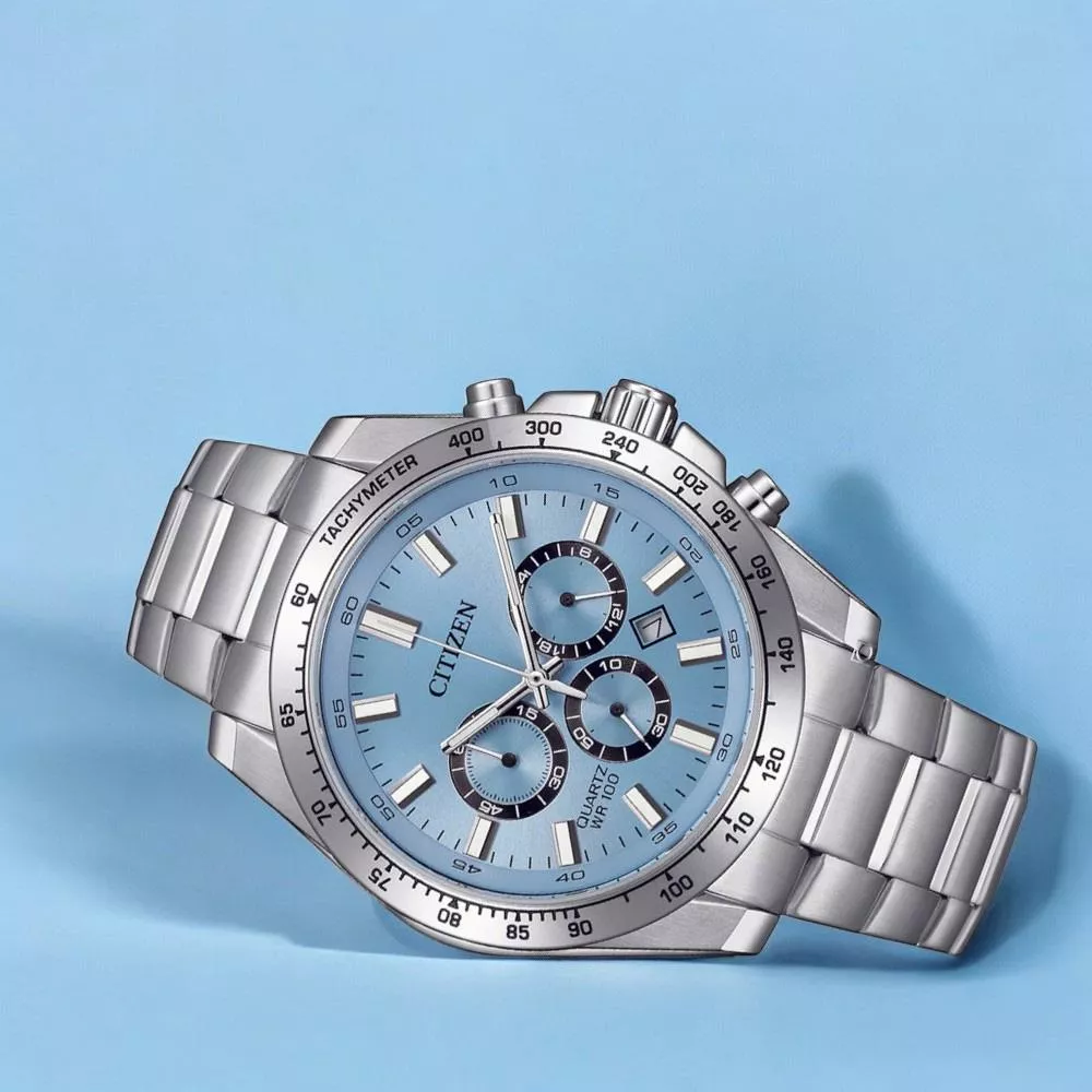 CITIZEN 星辰 Chronograph 運動潮男計時石英腕錶-44mm冰藍 AN8230-59L