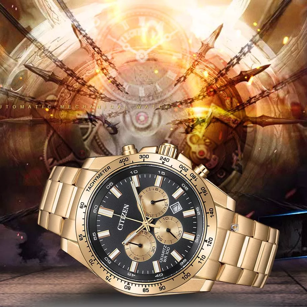 運動計時碼錶完美融合了時尚、功能和精準度。配備 1/1 秒計時和 60 分鐘計時功能,這款腕錶確保您始終處於最佳狀態。它具有 24 小時制時間顯示和便捷的日期功能,專為注重外觀和性能的人士打造。這款腕錶採用光滑的玫瑰金不鏽鋼錶殼和錶鍊,搭配醒目的黑色錶盤,不只是一塊手錶,更是一種宣言。精緻的設計引人注目,使其成為休閒和正式場合的理想選擇。這款計時碼錶搭載星辰尖端的日本石英機芯,保證無與倫比的精準度和可靠性,確保您每時每刻都值得信賴。無論您是外出探險還是參加商務會議,西鐵城石英男士運動計時碼錶都能讓您準時、時尚,並引領潮流。