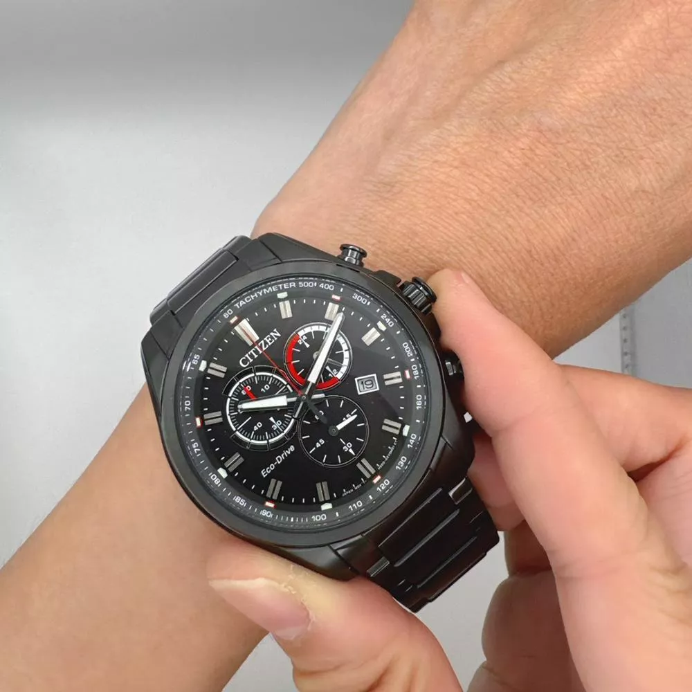 CITIZEN 星辰 光動能三眼計時腕錶 男錶 手錶-黑色-43mm AT2137-50F
