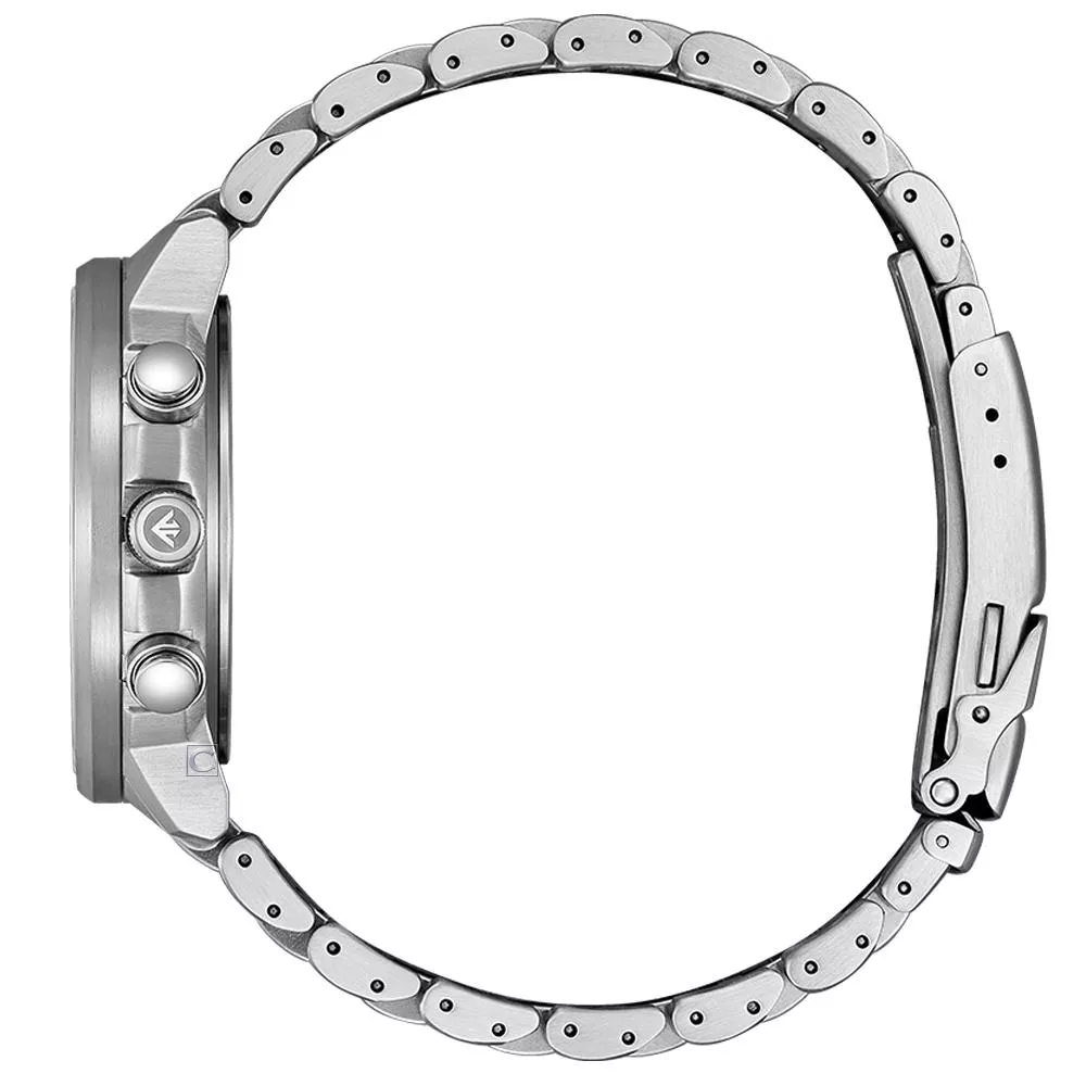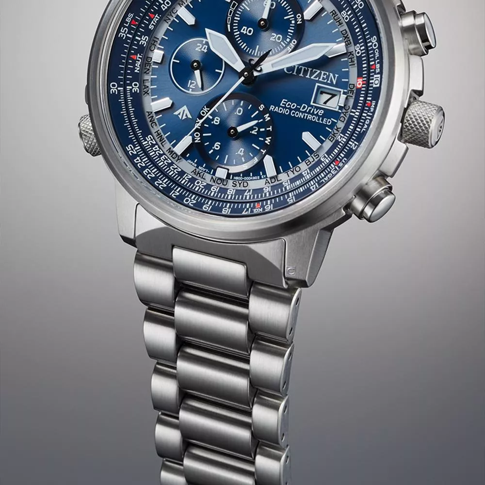 這款腕錶採用西鐵城光動能原子計時技術,可自動與四個地區的本地訊號同步,無論您的旅程將您帶到哪裡,無論天空如何,都能保持精準的時間。
