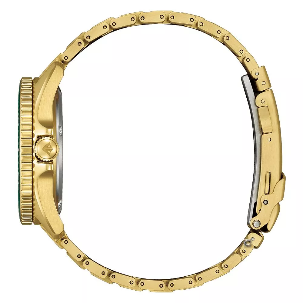 這款潛水腕錶採用經典設計,40.6毫米錶殼配戴舒適。旋轉錶圈採用經典飾面,全週略帶凹槽,操作便利。三片式金屬錶帶採用獨立中心鏈節和鏡面斜面設計,打造出強烈的立體立體感。錶扣採用棘輪式雙扣設計,即使穿著潛水衣也能輕鬆調整和扣緊。錶盤從中心向邊緣呈現漸層色,令人聯想到清澈的海洋深處。錶盤簡潔而優雅。