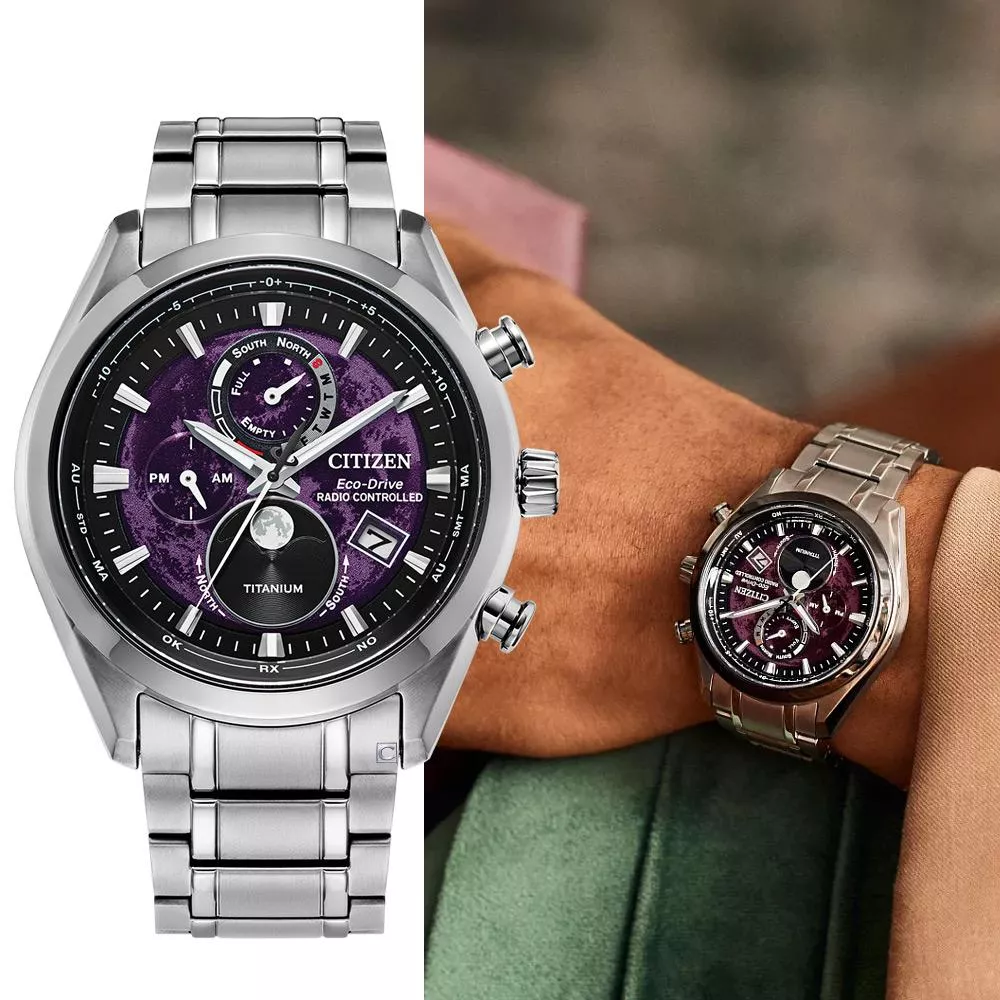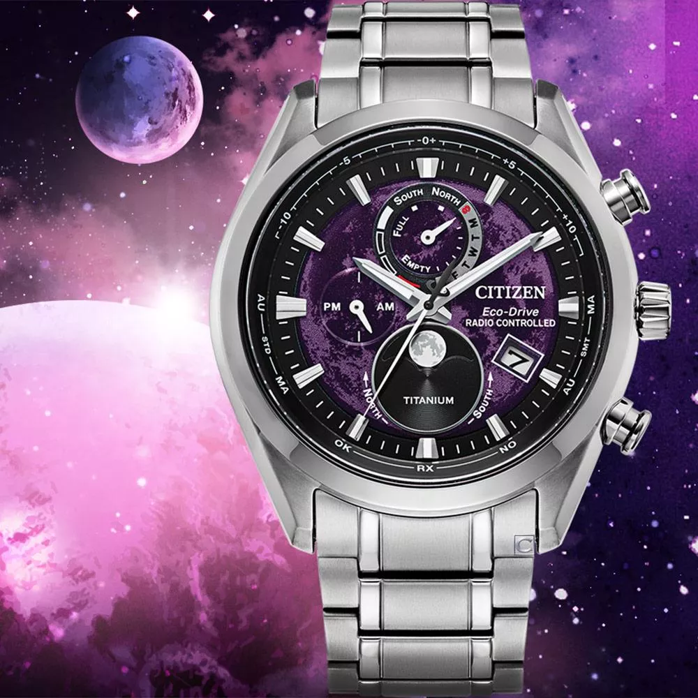 CITIZEN 星辰 月相錶 光動能錶 電波錶 計時鈦金屬手錶 男錶 指針錶-43mm BY1010-81Z