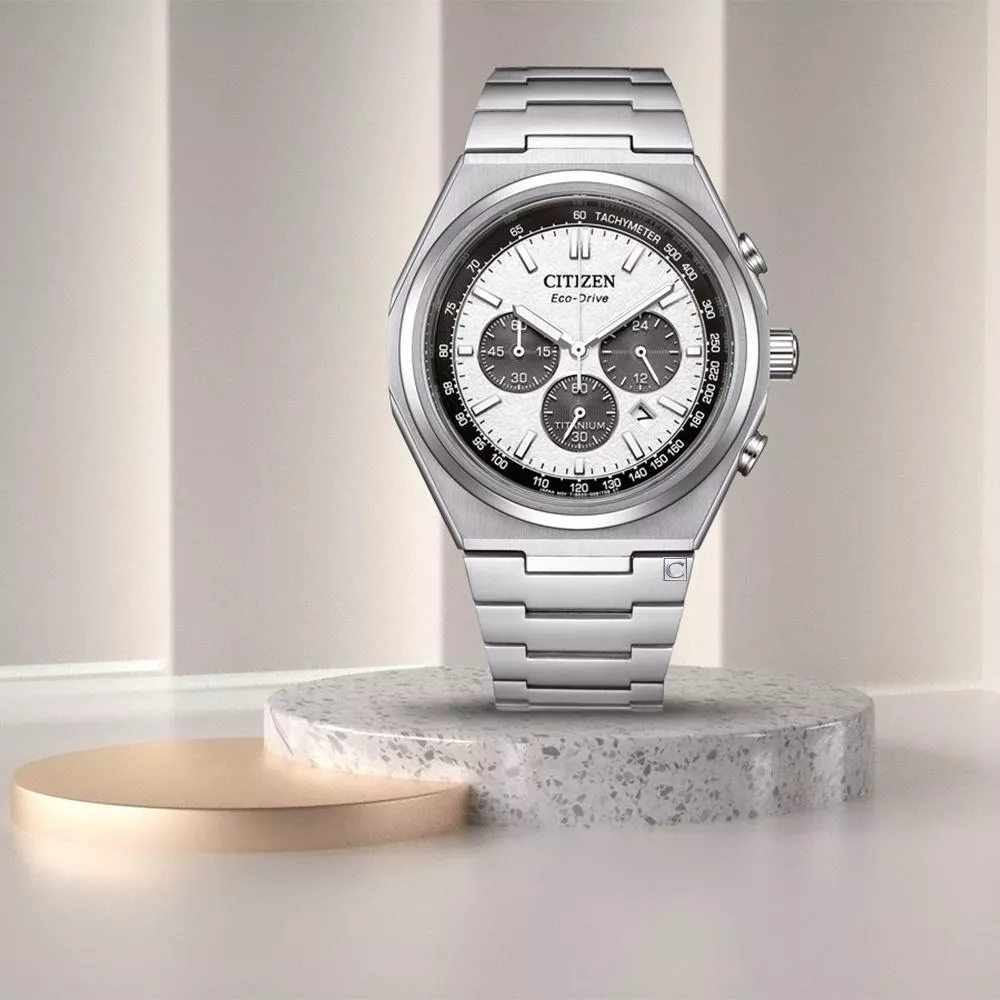 「Zenshin」系列獻給自信掌握新「鈦」度的你。 2025年是CITIZEN推出全球首款鈦金屬腕錶的55週年, CITIZEN不斷精煉用鈦之道,成就CITIZEN獨有的超級鈦™誕生。 全新Zenshin系列採用經Duratect表面硬化技術處理後的鈦金屬-超級鈦™,兼具輕盈、親膚、耐磨損與耐腐蝕特性。從腕間展現耀眼不凡新「鈦」度,以沉穩而堅定、清晰與果敢面對生活的時刻挑戰。