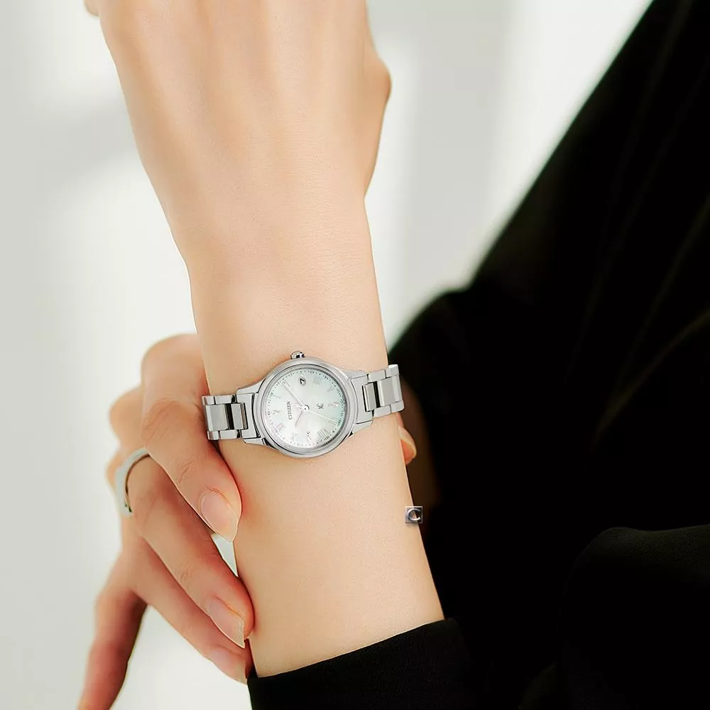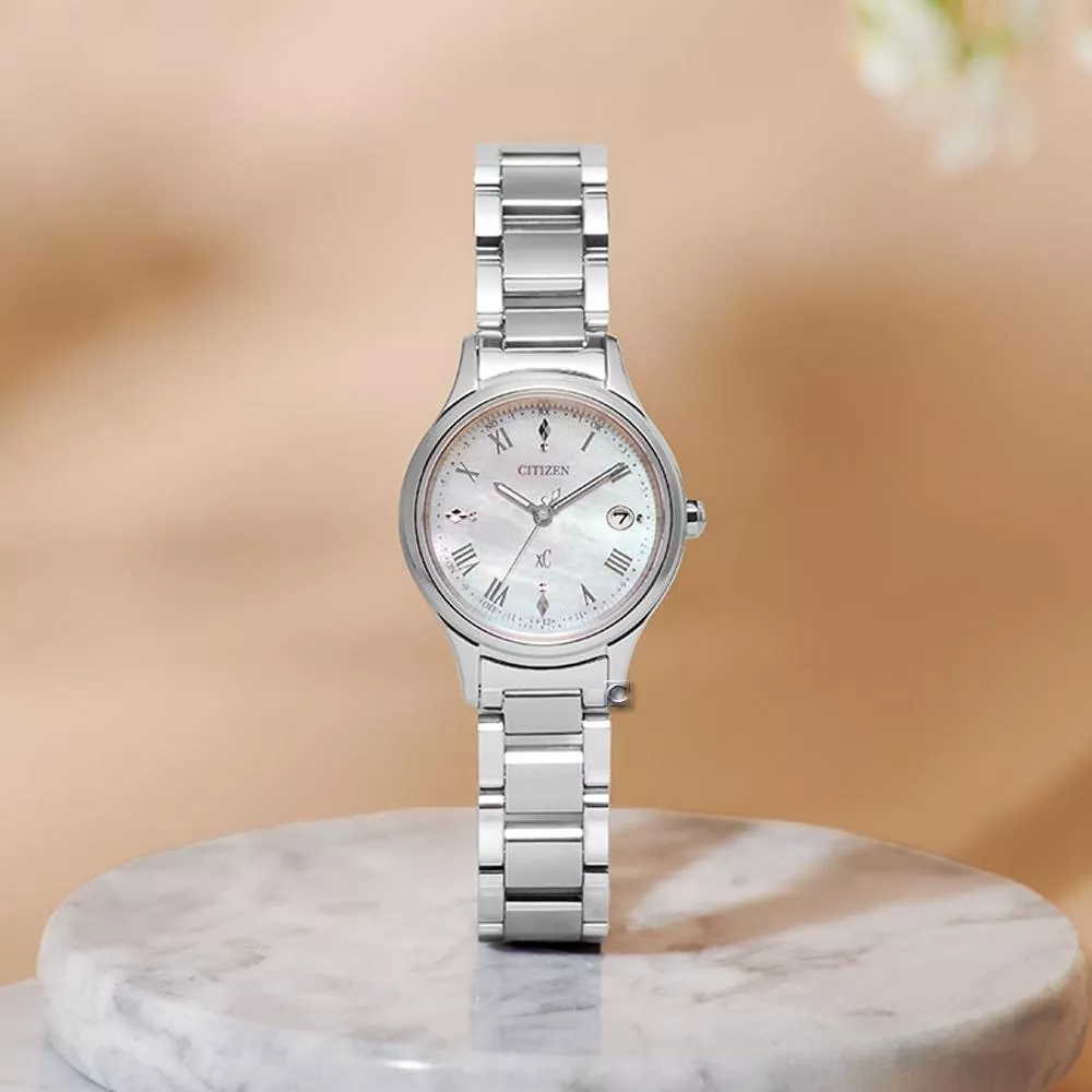 CITIZEN 星辰 xC 簡約貝母面光動能電波腕錶-27mm ES9490-52D