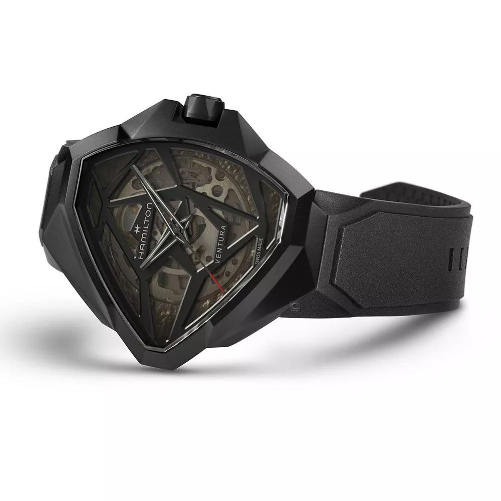 探險系列Edge鏤空腕錶一反傳統,在製錶之路上大膽向前邁進。腕錶設計創新大膽,別具建築感,跳脫探險系列錶殼代表性的三角形錶殼結構。這款時計色調深邃神秘,設計前衛,巧妙運用光影,為造型增添一種如夢似幻的深度。黑色錶殼別具格調,內置H-10-S機芯,透過漸變效果鏤空錶盤逐步展現。腕錶配備黑色橡膠錶帶。