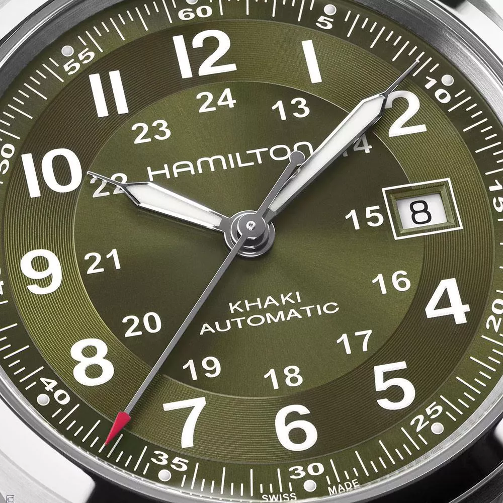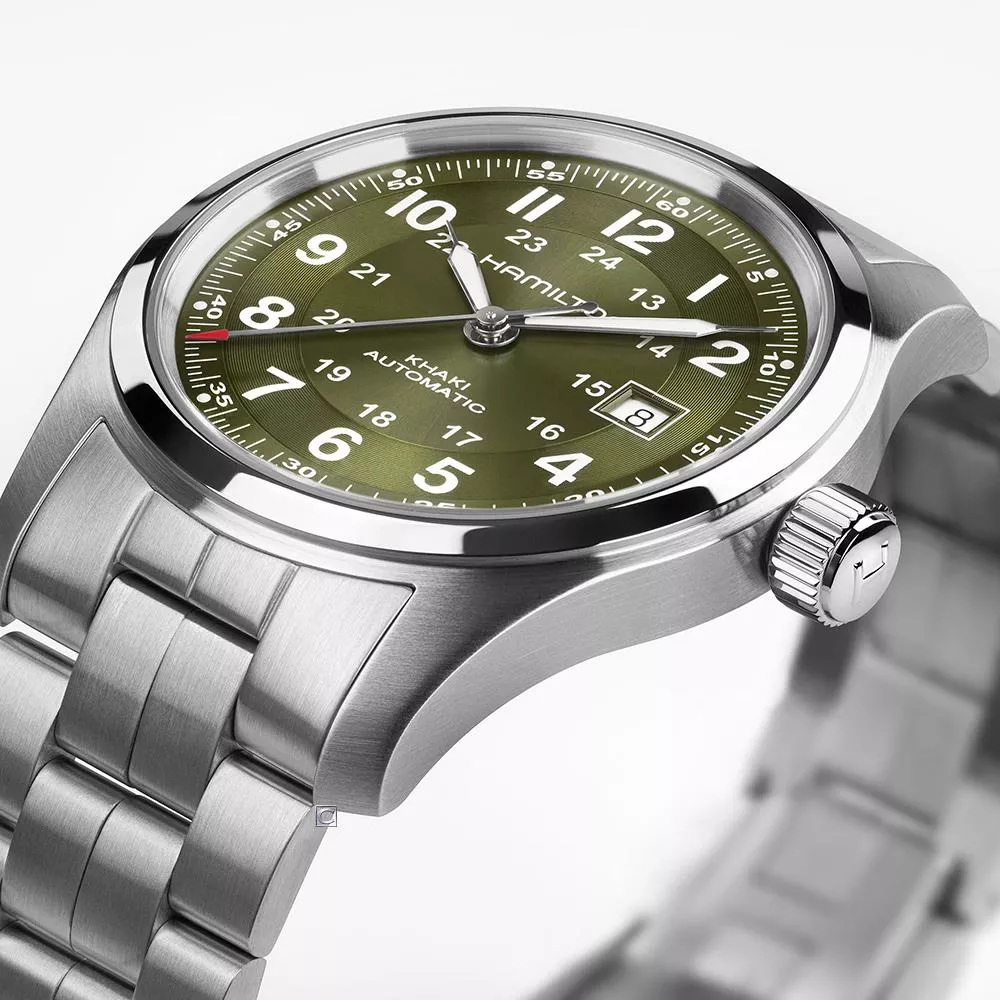 卡其陸戰系列自動上鍊腕錶的靈感源自原創軍用腕錶,結合傳統軍事元素和當代設計於一身,適合時尚先鋒在任何場合佩戴。卡其綠色太陽線紋錶盤的小時圈設有蝸紋,流光溢彩,具備紋理質感和設計深度。專為活動和冒險而設,獨特的H-10自動上鍊機芯提供80小時動力儲存,絕不令你失望。 探索我們的卡其陸戰系列。