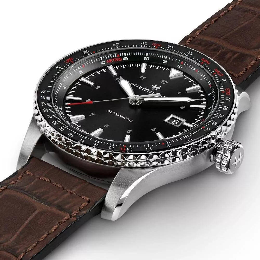 Khaki Aviation Converter糅合尖端技術與時尚風格雙向旋轉滑尺錶圈方便佩戴者進行重要的計算和換算,