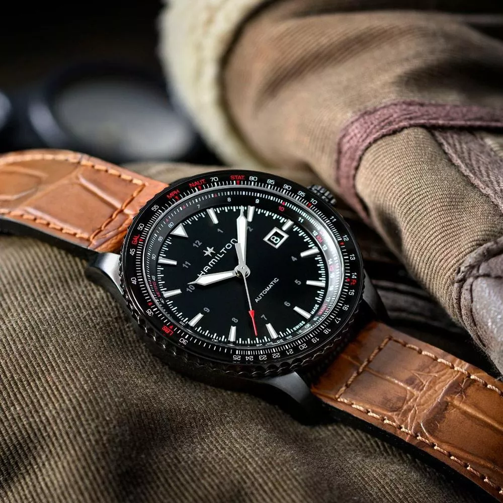 內置具有80小時動力儲存的H-10自動上鍊機芯,適合現代風格的飛行員或時常環球旅遊的都市人士。