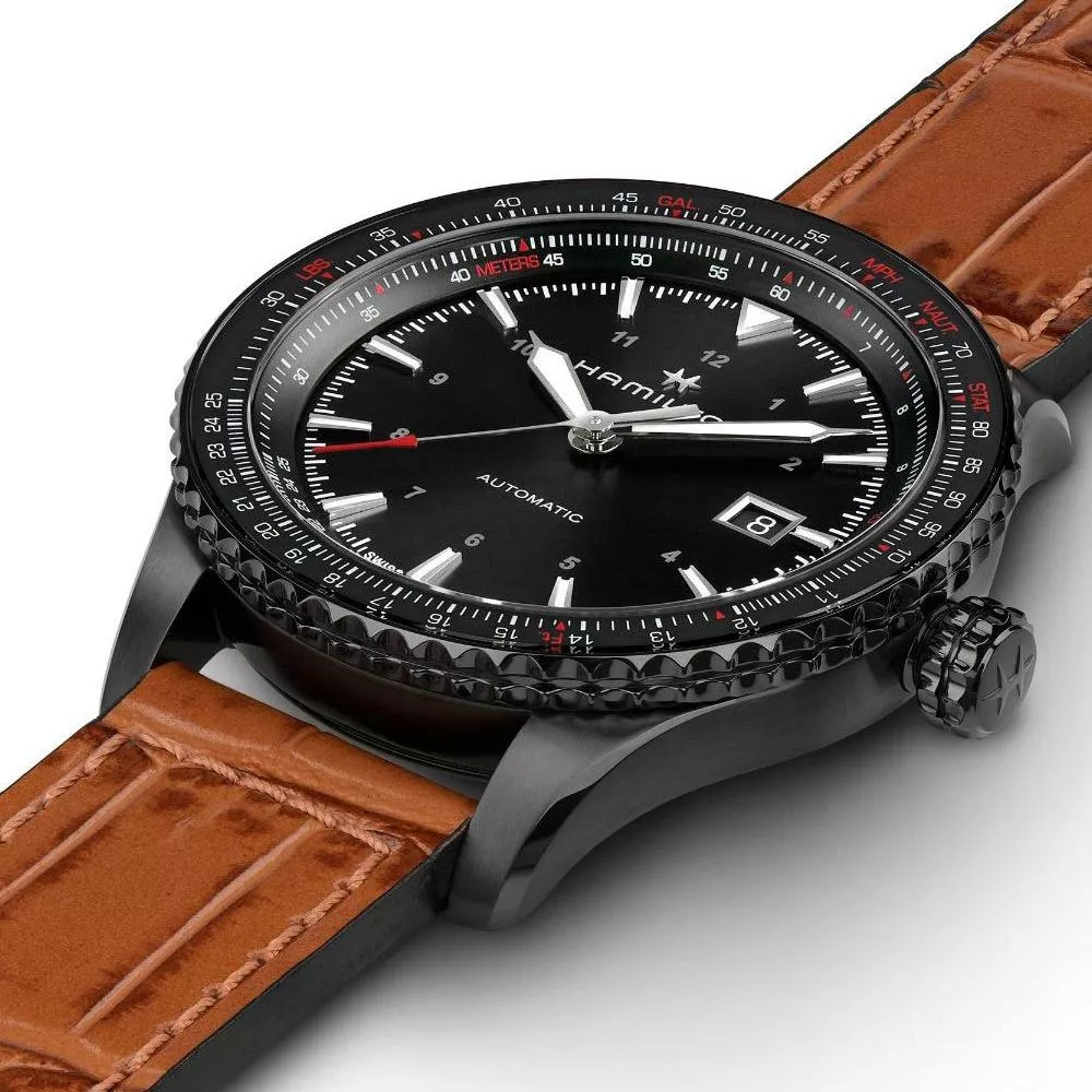 Khaki Aviation Converter糅合尖端技術與時尚風格雙向旋轉滑尺錶圈方便佩戴者進行重要的計算和換算,