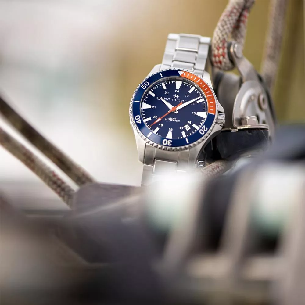 堅固可靠的Khaki Navy Scuba腕錶不僅適合夏日海上暢玩,上班日子佩戴同樣典雅大方。