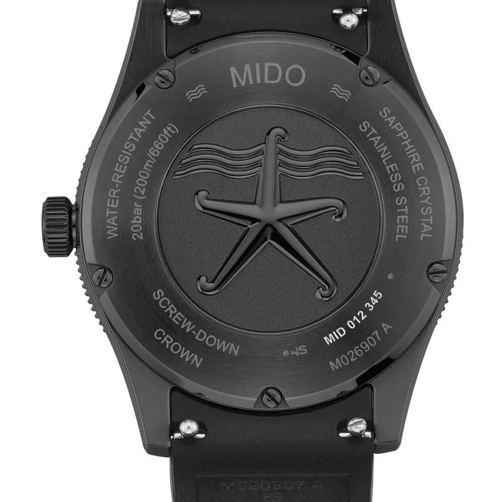 搭配完美的39毫米直徑且結合纖薄的錶殼,標誌著海洋之星系列的重要突破。這款自動腕錶的美學特色體現在其獨特且具有辨識度的浮雕錶盤上,巧妙呈現海水在海床上刻劃出的波紋。防水深度可達200米,其旋入式錶背上鐫刻品牌標誌海星圖案,象徵著MIDO在防水技術方面的悠久製錶專業。