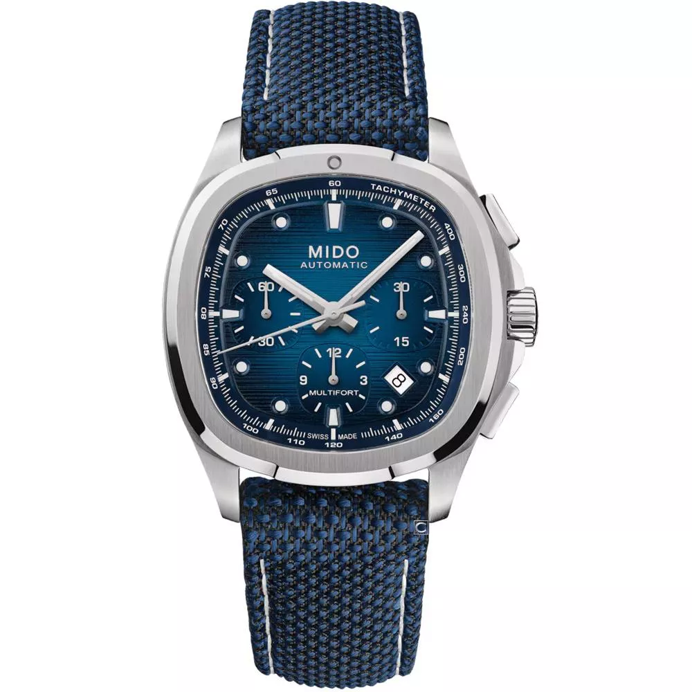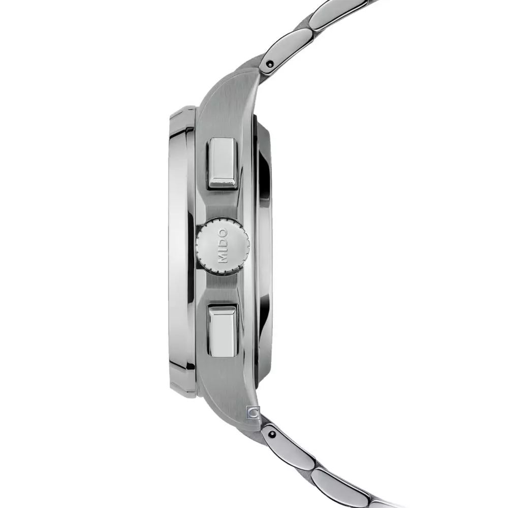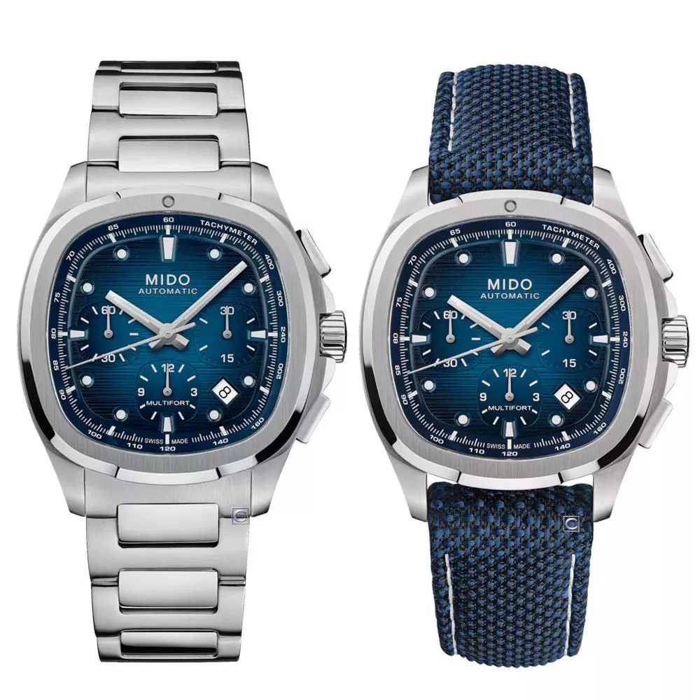 延續MIDO一貫的大膽精神,全新Multifort TV Chronograph以獨特的電視螢幕造型錶殼,大膽展現與眾不同。橫向髮絲紋錶盤結合巧妙融入的計時盤,搭配細節上的撞色設計,讓這只腕錶個性十足。