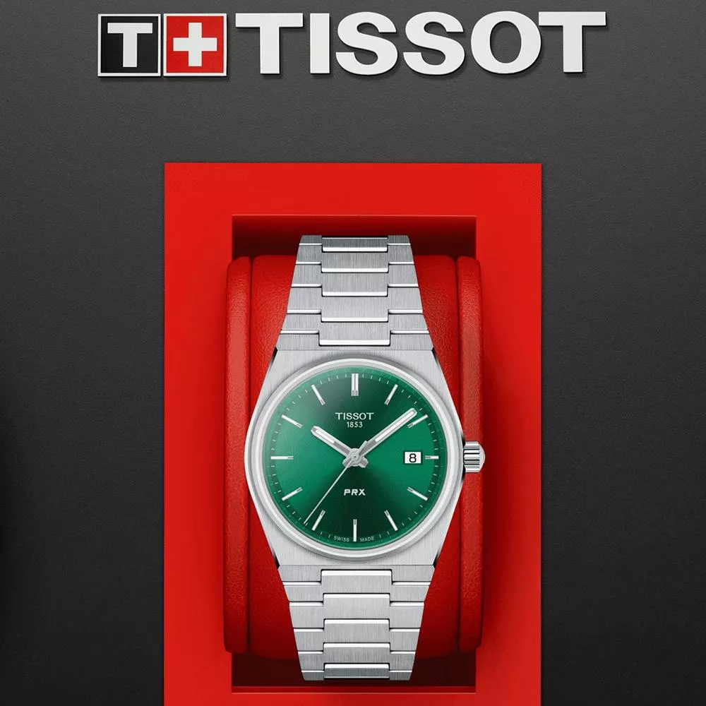 TISSOT 天梭錶官方授權 PRX 40 205 復古新浪潮時尚石英腕錶-35mm綠 T1372101108100