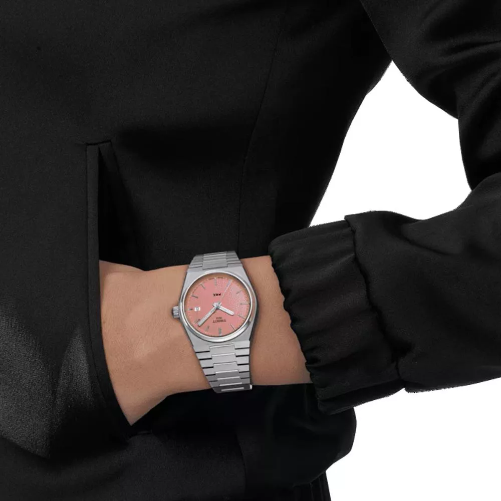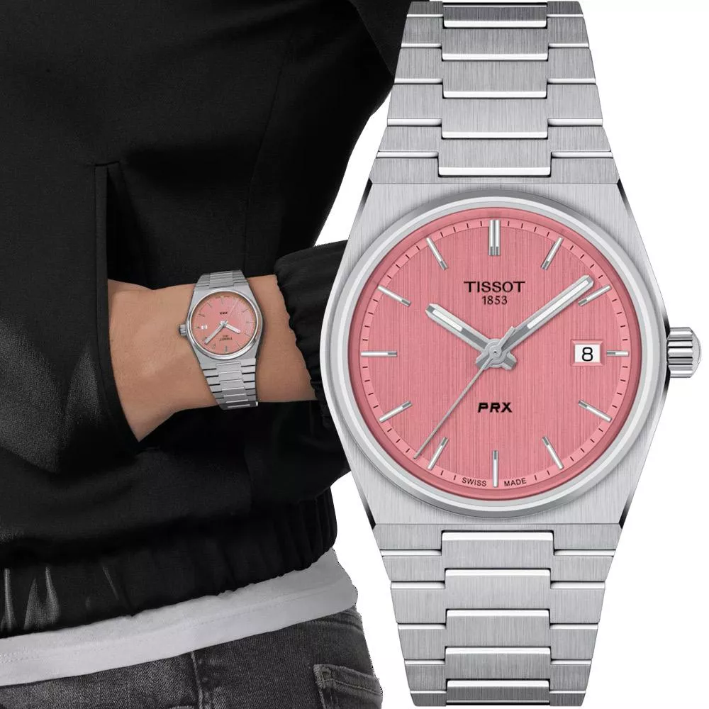 TISSOT 天梭 官方授權 PRX 經典簡約石英腕錶-35mm粉色 T1372101133100